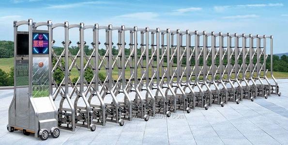 伸縮門廠家提示:伸縮門門體采用優(yōu)質(zhì)不銹鋼等材料制作,采用平行四邊形原理交接,伸縮靈活。驅(qū)動(dòng)器采用特種電機(jī)驅(qū)動(dòng),蝸桿蝸輪減速,并設(shè)有手動(dòng)離合器,停電時(shí)可手動(dòng)啟閉。伸縮門為伸縮棚格型,具有啟閉平穩(wěn)、透視門體,開啟后占用空間小等特點(diǎn)。